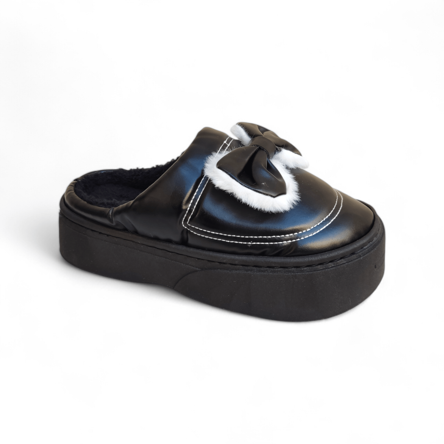 Leather tie fur mules
